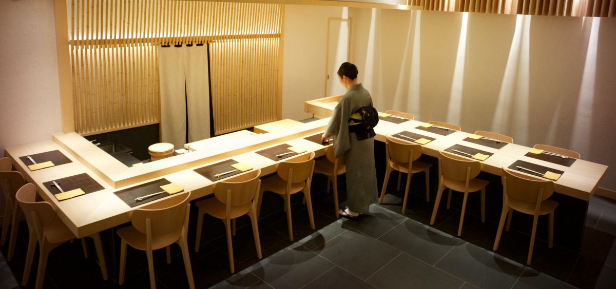 After a short closure to reinvigorate the restaurant, the final flourish is Toki, an elegant space aptly named after time in Japanese. A dappled bamboo grove effect is achieved through clever lighting and layers of timber and wood panelling, with a bamboo ‘stage’ where chef Hashida plies his omakase offerings. This gourmet atelier seats about 14 persons in privacy, and is popular for small groups or private events. The counter table extends itself on one side, giving the chance for smaller groups of four persons to face each other for more convivial dining.