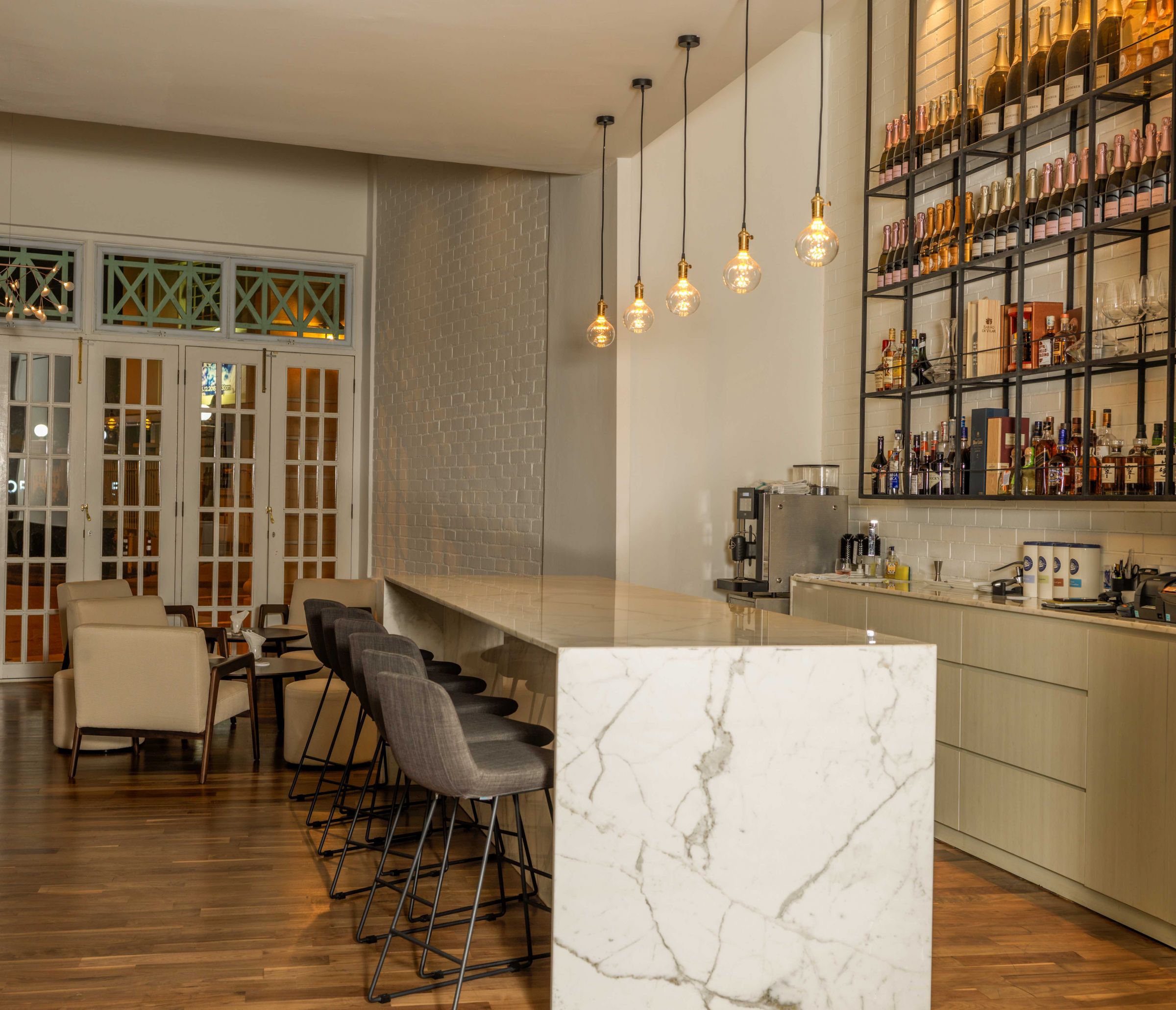 Located on the corner of Wilkie Road, the elegant 28Wilkie is the brainchild of entrepreneur and smart homes designer, Benjamin Goh. Enter into warm, demurely-lit interiors with wooden flooring and a marble-top bar for pre-dinner drinks, before heading to the main dining room showcasing an impressive collection of wine bottles.